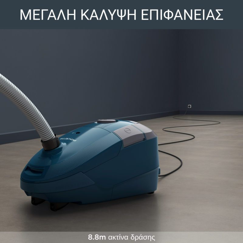 Χάρη στη μεγάλη ακτίνα σκουπίσματος είναι ιδανική για χρήση σε μεγάλους χώρους χωρίς αποσύνδεση από την πρίζα, για πλήρη άνεση και πρακτικότητα.