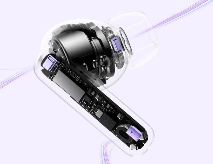 Τα ακουστικά είναι εξοπλισμένα με τρία μικρόφωνα που συνεργάζονται με τον αλγόριθμο βαθύ νευρωνικό δίκτυο (DNN) για να διακρίνουν τις φωνές από το θόρυβο και να εξαλείφουν το θόρυβο κατά τη διάρκεια των κλήσεων.