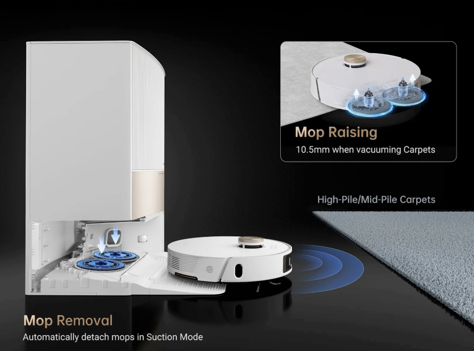 Η L20 Ultra καταλαβαίνει αν υπάρχει χαλί. Χάρη στην υπερηχητική ανίχνευση χαλιών και τις τρεις στρατηγικές καθαρισμού (ανύψωση σφουγγαρίστρας, αφαίρεση ή αποφυγή), διατηρεί τα χαλιά σου πάντα στεγνά. Αν εντοπίσει χαλί, επιστρέφει στη βάση, αφαιρεί τις σφουγγαρίστρες, και συνεχίζει με αναρρόφηση για βαθύ καθαρισμό. Έξυπνο; Πιο πολύ απ’ όσο φαντάζεσαι!