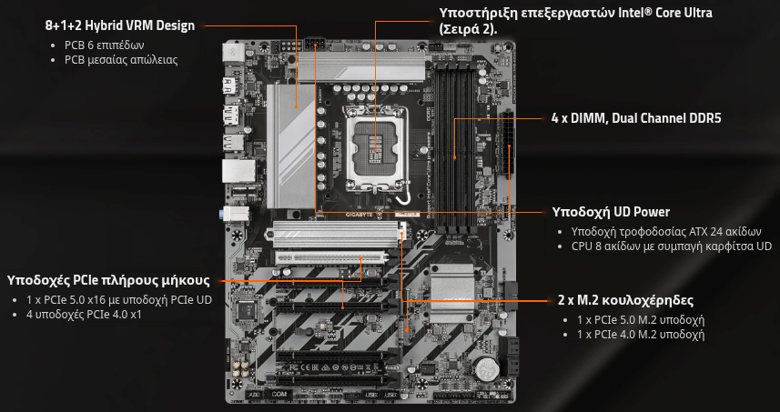 • Υποστήριξη επεξεργαστών Intel® Core Ultra (Σειρά 2).
