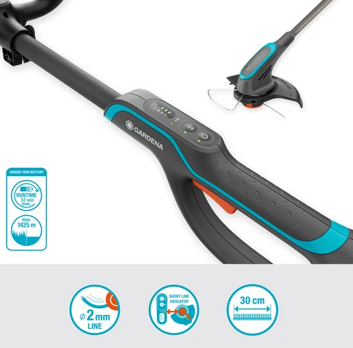Ελαφρύ, στιβαρό και έτοιμο να δώσει το ιδανικό φινίρισμα στον κήπο σας. Γνωρίστε το Χορτοκοπτικό Μπαταρίας Gardena EasyTrim 25/18V P4A, το χορτοκοπτικό μπαταρίας 2 σε 1. Χρησιμοποιεί μπαταρία 18V POWER FOR ALL (πωλείται χωριστά), και παρά το βάρος των μόλις 1,7 κιλών (2,1 με την μπαταρία), αυτό το χειροκίνητο τρίμερ παρέχει ισχυρή κοπτική απόδοση με τόξο κοπής 25 cm και μεσινέζα αυτόματης τροφοδοσίας 1,6 mm.