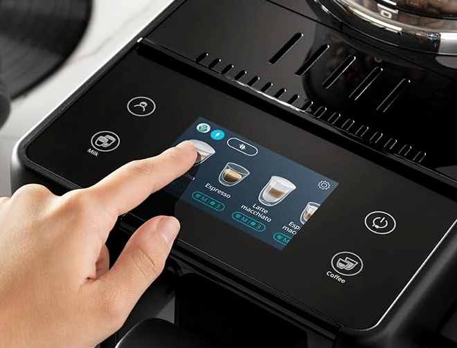 Η 3,5” έγχρωμη οθόνη αφής προσφέρει πλούσια κινούμενα γραφικά και καθιστά τη διαχείριση του καφέ παιχνιδάκι. Με 4 προφίλ χρηστών, η Rivelia μαθαίνει τις προτιμήσεις σου και προσαρμόζει το μενού όλη την ημέρα, εξασφαλίζοντας μια εξατομικευμένη και συναρπαστική εμπειρία.