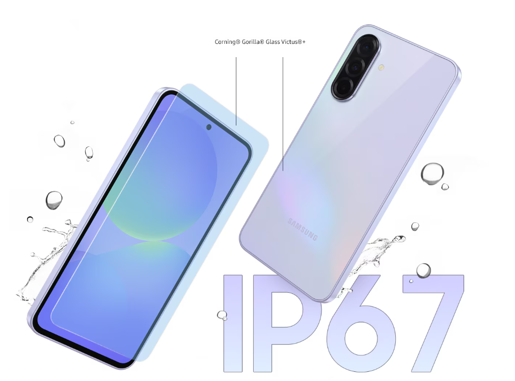 Το Corning Gorilla Glass Victus+ διατηρεί την εντυπωσιακή σχεδίαση του Galaxy A36 5G. Και με προστασία IP67, η νέα σειρά Galaxy A παραμένει ανθεκτική στο γλυκό νερό (έως και 1m και για 30') και στη σκόνη.