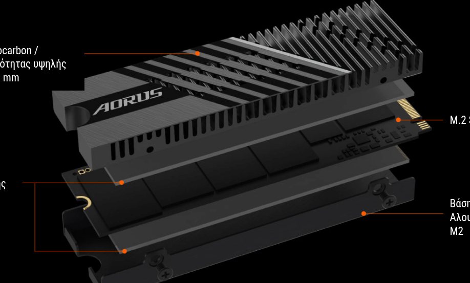 Ο SSD AORUS Gen4 7300, υιοθετώντας τους διανομείς θερμότητας αλουμινίου με επίστρωση Nanocarbon, βελτιώνει τη θερμική διάχυση και βοηθά στην αποφυγή στραγγαλισμού. Το AORUS Gen4 7300 SSD καλύπτει πλήρως τις απαιτήσεις ps5 και προσφέρει την καλύτερη εμπειρία παιχνιδιού.