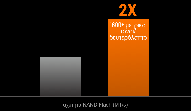Η εξαιρετικά υψηλής ταχύτητας 3D TLC NAND Flash λειτουργεί στα 1600+ MT/s, η οποία είναι 50% μεγαλύτερη από την προηγούμενη έκδοση, γεγονός που οδηγεί σε καλύτερη απόδοση.