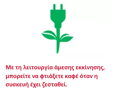 Με τη λειτουργία άμεσης εκκίνησης, ο καφές μπορεί να παρασκευαστεί αμέσως μόλις ζεσταθεί η συσκευή. Μετά την παρασκευή του καφέ, η καφετιέρα SENSEO απενεργοποιείται αυτόματα, εξοικονομώντας έτσι ενέργεια.