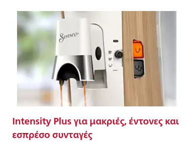 Επιλέξτε εύκολα τον αγαπημένο σας καφέ με το Intensity Plus. Με τη βοήθεια του διακόπτη, μπορείτε να επιλέξετε ανάμεσα σε κλασικό απαλό, έντονο, μακρύ ή πλούσιο εσπρέσο και το επόμενο φλιτζάνι SENSEO είναι έτοιμο.