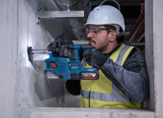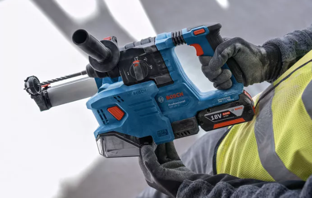 Το περιστροφικό πιστολέτο GBH 18V-22 Professional είναι το εργαλείο της επιλογής σας, εάν θέλετε ένα ισχυρό αλλά διαχειρίσιμο ηλεκτρικό εργαλείο. Είναι ιδανικό για τρύπημα 6 mm έως 10 mm, είτε είστε υδραυλικός που τοποθετεί εγκαταστάσεις ειδών υγιεινής ή ξυλουργός που προετοιμάζει έναν χώρο για εγκατάσταση κουζίνας. Το ίδιο και εάν είστε ηλεκτρολόγος, μπορείτε να βασιστείτε σε αυτό το εργαλείο, ιδιαίτερα κατά το τρύπημα πάνω από το κεφάλι, για να εγκαταστήσετε φωτιστικά, λάμπες και ανιχνευτές καπνού. Ο απορροφητήρας σκόνης GDE 18V-12 Professional είναι ειδικά σχεδιασμένος, για να διευκολύνει την εργασία πάνω από το κεφάλι. Συμβατό με το Bosch Professional 18V System και με τη συμμαχία μπαταριών πολλαπλών μαρκών AMPShare.