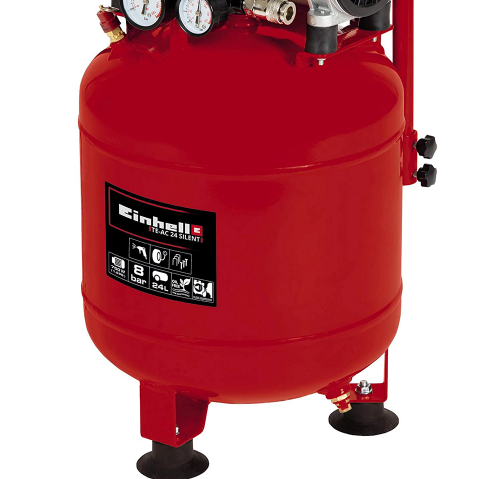 O αεροσυμπιεστής Einhell TE-AC 24 Silent διαθέτει απόδοση ισχύς 750W και χαμηλό επίπεδο θορύβου 57dB (τιμή LpA). Διαθέτει κινητήρα χωρίς λάδι για ελάχιστη συντήρηση και δεξαμενή 24 λίτρων, που προσφέρει επαρκή αποθέματα αέρα για ένα μεγάλο πλήθος εργασιών. Μπορεί να χρησιμοποιηθεί για εργασίες φυσήματος, φουσκώματος αλλά και βαψίματος με τη σύνδεση των κατάλληλων εργαλείων.