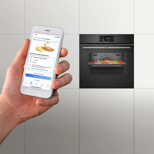 Με το Home Connect, μπορείς να χειρίζεσαι τον φούρνο σου από όπου κι αν είσαι. Άλλαξε ρυθμίσεις, ενεργοποίησε προγράμματα και πάρε ειδοποιήσεις όταν το φαγητό είναι έτοιμο. Και φυσικά, φώναξε την Alexa ή τον Google Assistant να βοηθήσουν κι αυτοί λίγο!