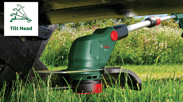 Το χορτοκοπτικό UniversalGrassCut 18V-26-500 κάνει την τακτοποίηση του κήπου ταχύτερη και πιο εύκολη. Χάρη στον εργονομικό σχεδιασμό και τις ευέλικτες λειτουργίες του, αυτό το χορτοκοπτικό μπαταρίας μπορεί να ελίσσεται φυσικά, επιτρέποντας σε όλους τους χρήστες να διατηρούν μια υγιή στάση σώματος. Ο τηλεσκοπικός στύλος μπορεί εύκολα να ρυθμιστεί στο σωστό ύψος, περιστρέφοντας τον σφιγκτήρα. Με ένα απλό πάτημα και στροφή της επάνω λαβής ενεργοποιείται η λειτουργία κοπής άκρων. Κατά την κοπή χόρτων ή ζιζανίων κάτω από παγκάκια, φράχτες ή σε άλλες στενές περιοχές, η κεφαλή του χορτοκοπτικού μπορεί να περιστραφεί για ευκολότερη πρόσβαση, ευέλικτη πλοήγηση και ακρίβεια.