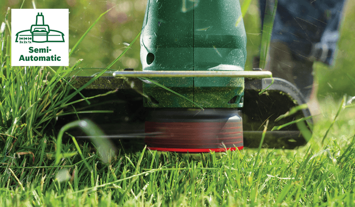 Το ημιαυτόματο καρούλι τυλίγει την πετονιά κάθε φορά που ενεργοποιείται ο διακόπτης, εξαλείφοντας την ανάγκη να ρυθμίζετε χειροκίνητα το καρούλι ή χτυπήματος της κεφαλής. Αυτό εξασφαλίζει το βέλτιστο μήκος της γραμμής κοπής και αδιάλειπτο, ξέγνοιαστο κλάδεμα.