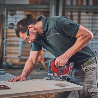 Σέγα της εταιρείας Einhell, με λειτουργία μπαταρίας 18V (δεν περιλαμβάνεται). Χρησιμοποιείται για κοπές με μεγάλη ακρίβεια σε υλικά όπως το ξύλο, το μέταλλο και το αλουμίνιο και λόγω του χαμηλού βάρους της (2.1Kg) μπορεί να χρησιμοποιηθεί με το ένα χέρι. Έχει δυνατότητα προσαρμογής της ταχύτητας έως 3500rpm. Ενσωματωμένο φωτάκι LED για φωτισμό του χώρου εργασίας. Μπορεί να κόψει ξύλο μέχρι 135mm και μέταλλο μέχρι 10mm.